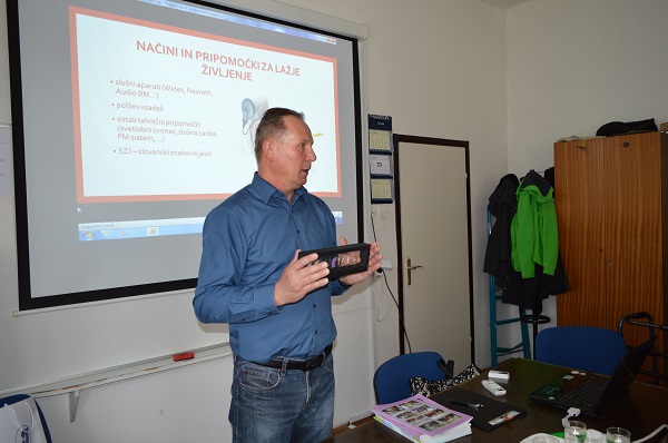 Prvi četrtek v aprilu smo imeli zelo koristno predavanje Medobčinskega društva gluhih in naglušnih iz Velenja. Prijazni in zgovorni Franc, Janja in Urška so nam razložili, zakaj pride do delne ali celo popolne gluhosti, kako si pomagamo, kakšni so predpisi, pripomočki in kako jih uporabljamo, kakšno je pravilno komuniciranje z naglušno osebo in še mnogo drugih koristnih informacij.