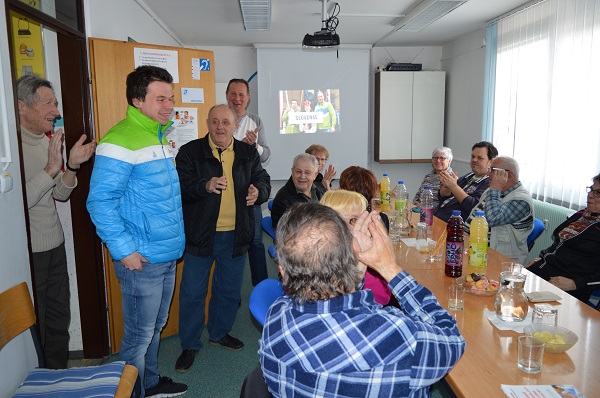 Izredno ponosni smo, da je vrhunski športnik na področju atletike, Tadej Enci, naš član. Za seboj ima številne uspehe in dobre rezultate, kar je seveda posledica trdih treningov in odrekanja. V društvu ga skušamo podpirati po svojih najboljših močeh. V soboto, 24.3. v večernih urah, smo se ga pričakali na Brniku in mu izrekli čestitke ob ponovnem uspehu. Skupaj s trenerjem Gregorjem Doberškom, sta se vrnila iz Belorusije, kjer je v Gomelu potekalo evropsko dvoransko prvenstvo gluhih. Tadej se je uspešno uvrstil v finale teka na 400 metrov. Žal je tekel na zelo neugodni 1. progi. Kot je povedal sam, je iz sebe iztisnil svoj maksimum, kar je bilo dovolj za dosego 4. mesta. To je v konkurenci med 24 tekmovalci odličen uspeh. Želeli smo mu izreči čestitke še v društvenih prostorih, zato smo mu v sredo 28.3.2018, pripravili sprejem. Okrog 17.ure sta prišla skupaj s trenerjem.