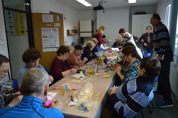 V sredo, 21.3.2018 smo se v velikem številu zbrali na Velikonočni ustvarjalni delavnici v prostorih društva. Prevladovale smo članice, ki smo pod strokovnem vodstvu naše članice Marine, izdelale zanimive košarice za pirhe ob prihajajočih Velikonočnih praznikih. Družbo nam je delalo nekaj članov, ki so ravno tako dokazovali ročno spretnost in kreativnost. Zavzeto smo izdelovali rožice in drugo okrasje iz papirja, sestavljali košarice. Na izdelane košarice smo potem lepili različne okraske v veselih pomladnih barvah. V košarice smo dali gnezda iz laskov na katere smo položili raznobarvne jajčke. Vsak je ustvaril svojo lastno malo umetnino, ker smo jih izdelali in okrasili po lastnih željah in idejah.